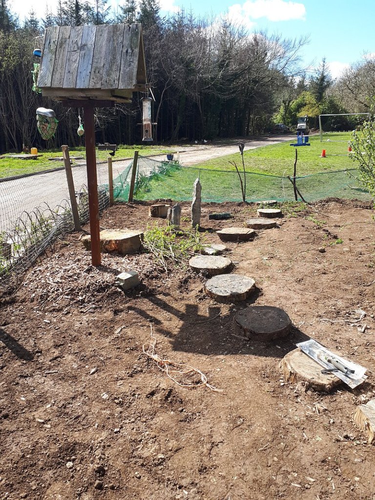 Time just seems to be flying by, weeks disappearing into months. One happening that remains constant are the cycles of life and also natures ability to recover. Back in April, the lady who owns the place we live asked if I would like to build a vegetable garden where some old decking lay. An unusable part of the garden that needed a facelift. One thing I seems to do is bring back old gardens and give them new life wherever I have lived, be it here in Ireland, in Spain and in Morocco. I was up for the challenge. While the space was being cleared and new soil added, it was time to decide on a plan. The property was scoured for reusable resources. old fencing posts, old decking, tree rings, stones etc. Willow twigs were cut to make fences and plants were bought from garden centres. Hopefully my choices will grow into an amazing colourful feature.
