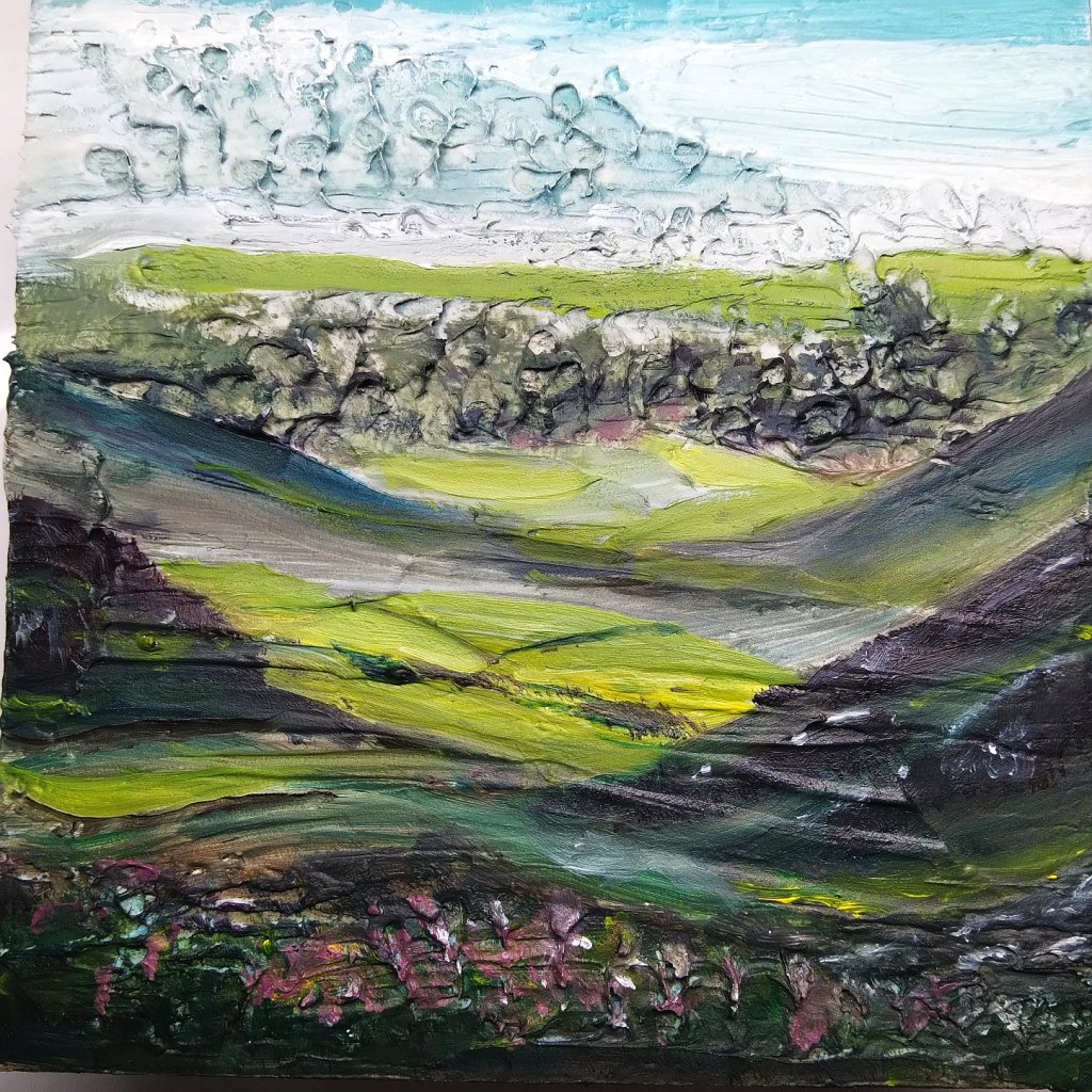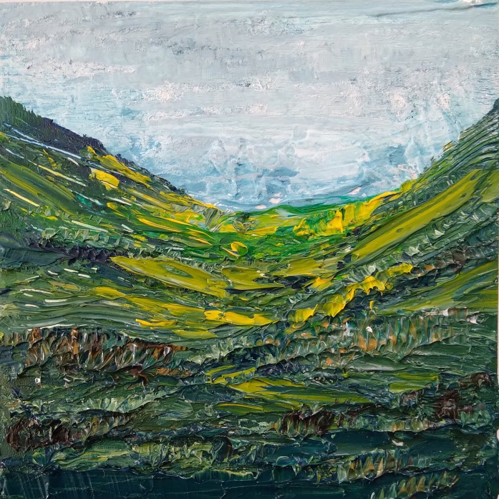I know very little about oils so each one is an experiment in texture, technique, mixing of colours with just a basic set and having some fun. Most are just from my own internal images, one was a copy of a photo…which is actually my least liked one. The more texture the better! I really love the way the grain of the wood adds to the overall image and creates wonderful landscapes.