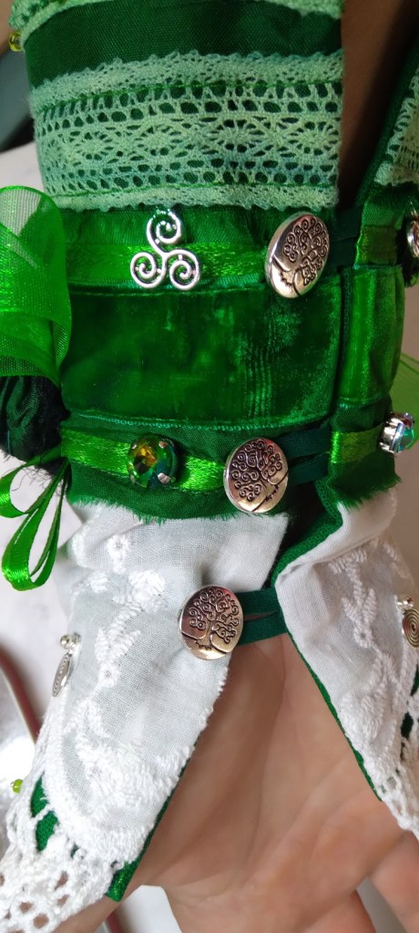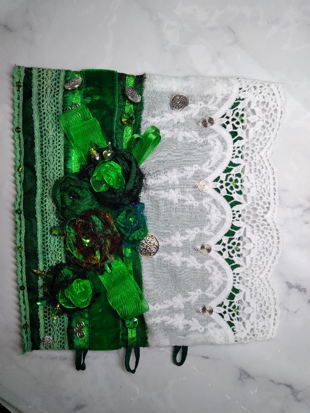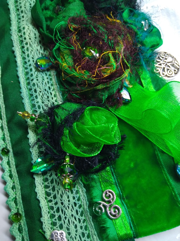 I have just completed this stunning wrist cuff in emerald greens and white. The colours of Ireland and the celts.