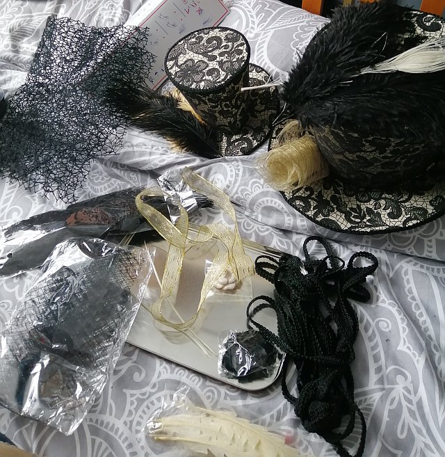 We also finally took delivery of a huge 25 meter roll of buckram for our hat making…that stuff has been like gold dust and just as elusive. So I have also been stitching away making hats both for myself and Emma to decorate.