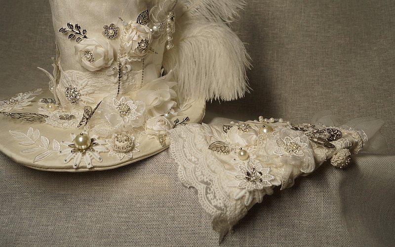 My first bridal set is completed, a gorgeous ivory silk hat and cuff, and two other hand dyed silk hats too. The wrist cuffs are so elegant and feminine, I am really delighted with them and I know they will be loved.