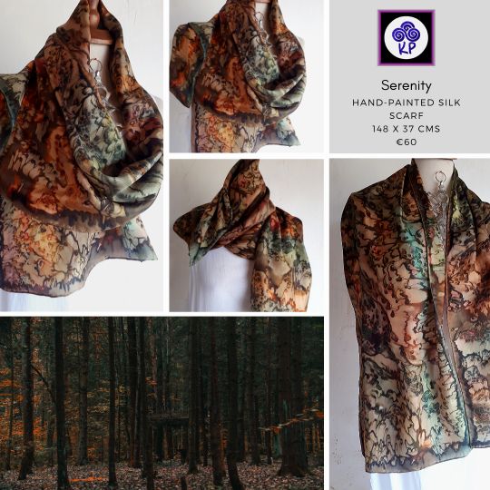 Silk also features across my work, whether it’s silk scarves, silk hats or silk textile wall art pieces. It is just such a lush fabric, also it’s a natural fibre. I prefer working with something that has a connection to nature. I have more recently started looking for more sustainable materials and discovered silk sari ribbons from India. I just love the fact that each ribbon has a story, it was once part of someone’s life for an occasion, daily work or some other use. Recycled jewellery is the same, it has a story.