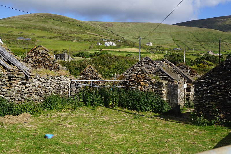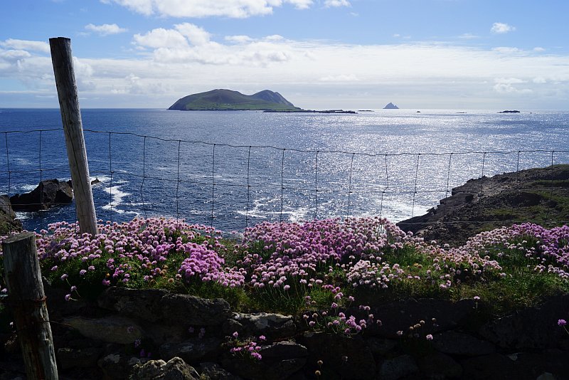 A visit to the Dingle Peninsula for me had to include taking the bus out to Dun Chaoin (Dunquin) with the farthest westerly pier in Europe and views to An Blascard Mor along with the other Blasket islands: Inishnabro and Inishvickillane to the south-west, the dramatic triangular mass of Inishtearaght, the most westerly island in Europe, to the west, and away to the north, Inishtooskert, also known as the Fear Marbh. Until 1953, the great Blasket island was home to a precious undiluted traditional culture that could be found in this isolated, far-flung community, living simply and frugally off the land and sea. Their stories were transcribed and the islanders themselves were encouraged to record their own lives. These became the first written works to be published from an oral Gaelic culture, revealing a lyrical, poetic style. After many years of hardship and emigration, the last inhabitants left the islands in 1953, when there were no longer enough strong arms left to row their traditional naomhoga (canoes) across the dangerous Blasket Sound. Commercial fishing too had a hand in their demise. Peig Sayers and Tomás O’Crohan, Micheál O’Guiheen, Maurice O’Sullivan and Seán O’Crohan are the storytellers and poets who tell about their lives through their words. I remember reading many of these books in the early 1990’s when I first came to live in Ireland. That first year along with my two children, we hiked the two long distances walking paths in both the Dingle and Iveragh peninsulas. Camping wild and soaking up the culture, history and vistas had a lasting impact on us all. It was wonderful to go back.