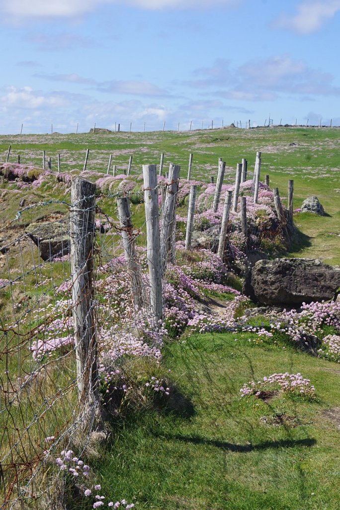 On the mainland a ruined village is now home to local sheep, the roofs are covered in the same tarred felting used for the naomhoga boats which made the crossing by islanders and their animals in the previous centuries. A tiny graveyard also tell its own sad story of strife and hardship. The landscapes though are truly magical. Yellow flag iris grow in abundance, purple orchids if you search, sea pinks, foxgloves, buttercups and fuchsia all made for a colourful show. Waiting for the little bus to arrive I was treated to the lyrical sounds of the language spoken in these parts, a gentle sound rather like the wind moving through the meadows.
