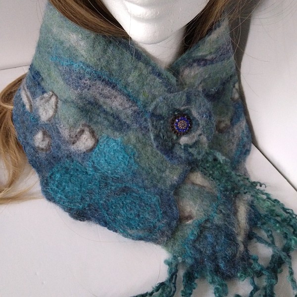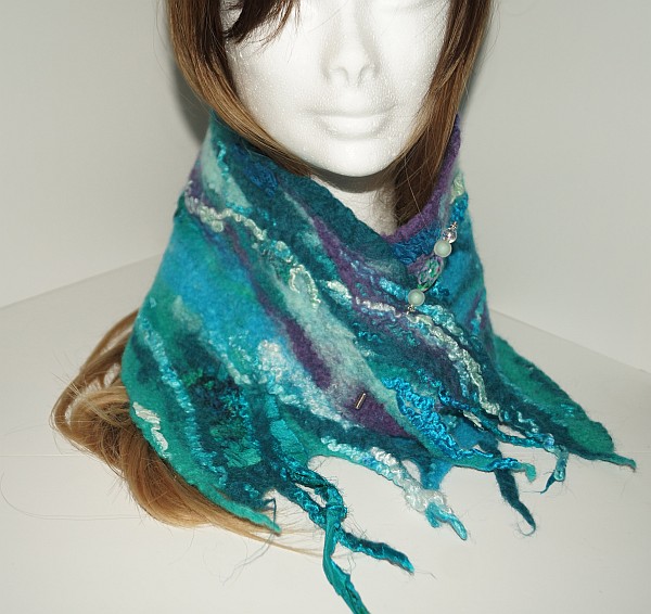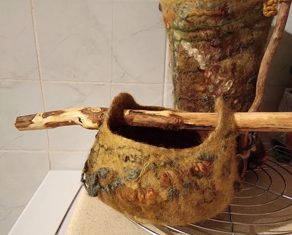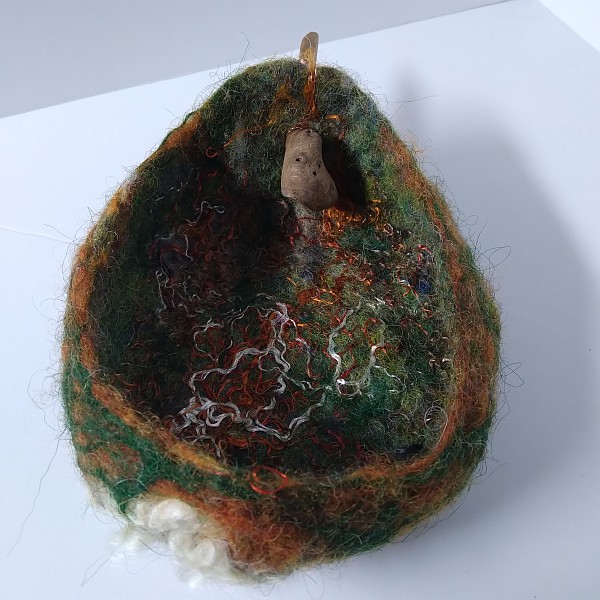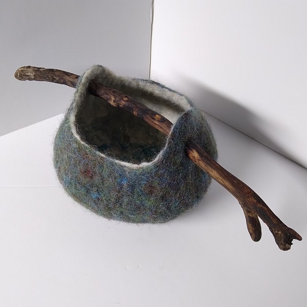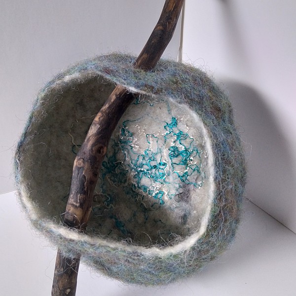 Wow October disappeared under clouds of wool! For many years I have wished to be able to felt and a friend gifted me some merino felting wool recently. I had no idea how to start but a few tutorials later and I dived in. I made my first wet felted neck warmer. Followed swiftly by a second pushing into new techniques and incorporating hand dyed wools of my own. Another tutorial later and I had to try making a bowl. I love bowls. I cracked it! I love affair is born. I seem to have spent most of October creating felted pieces, learning techniques, tested my own ideas and understanding how this wonderful and ancient way can be used. I wonder is it in my DNA because although it is a new direction for me, it doesn’t feel new, it feels like I have known this deep in my core. I am so delighted to now have the time and materials to explore and create. I like to incorporate found objects in my mixed media work so it made perfect sense to add natural objects like driftwood and fallen pieces of wood to my vessels. Copper wire and leather too.
