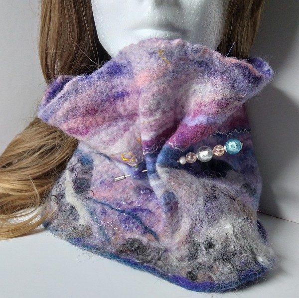 The colours in the land here are so wonderful and the Irish wool is perfect to create pieces with the colours of the land. Sunsets too and colourful skies inspire. I want my pieces to have a story, something to say as well as being pleasing to wear or have as a decoration.