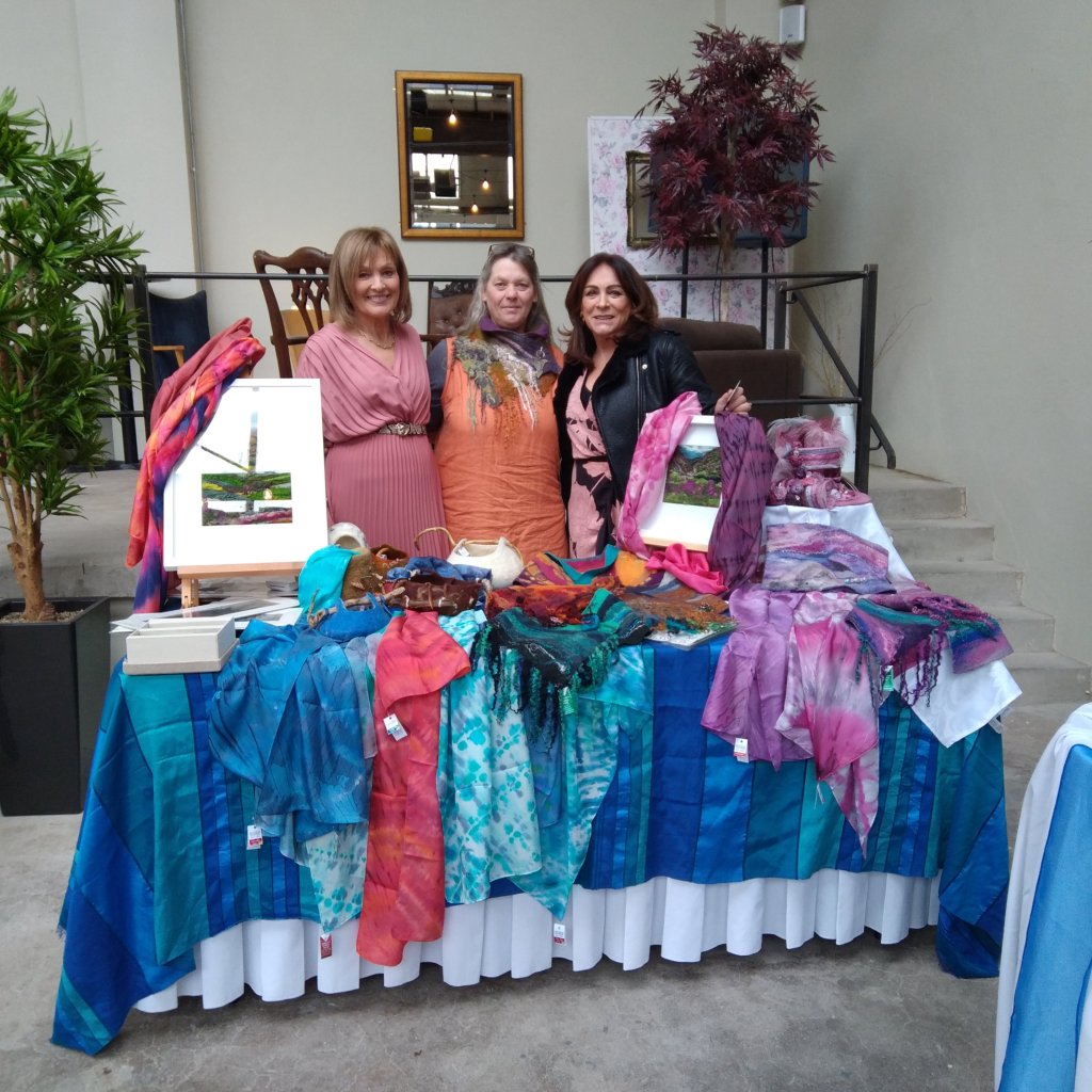 A few weeks back I had a phone call from a lady who had been gifted one of my silk scarves. She was calling to invite me to showcase my work at a charity event in a well known local hotel. A first for me. I jumped at the opportunity as it was a ticketed event for 200. It was an inaugural fund raiser for Cancer research with local dignitaries and the press as well as some other well known faces. I was one of four stands who were invited.