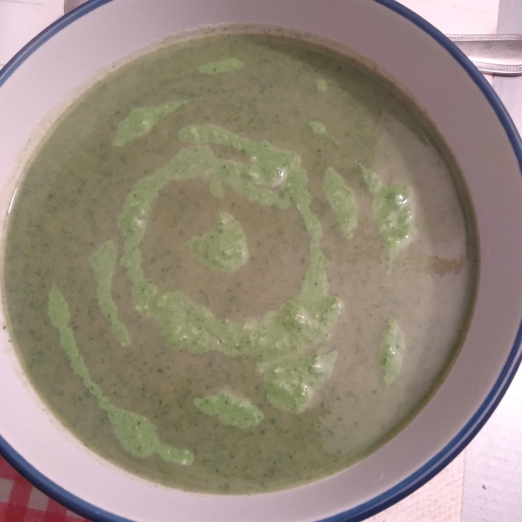 Serve your soup swirled with sorrel and pennywort pesto and home made bread. Nutritious and delicious!