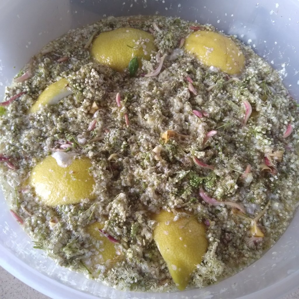 I collected elderflower blossoms and wild rose petals, both were made into syrups together and separately. When the elderflower season finished, I turned my attention to the often overlooked Meadowsweet. With these blossoms I added a few honeysuckle and wild dog rose petals along with some lemons.