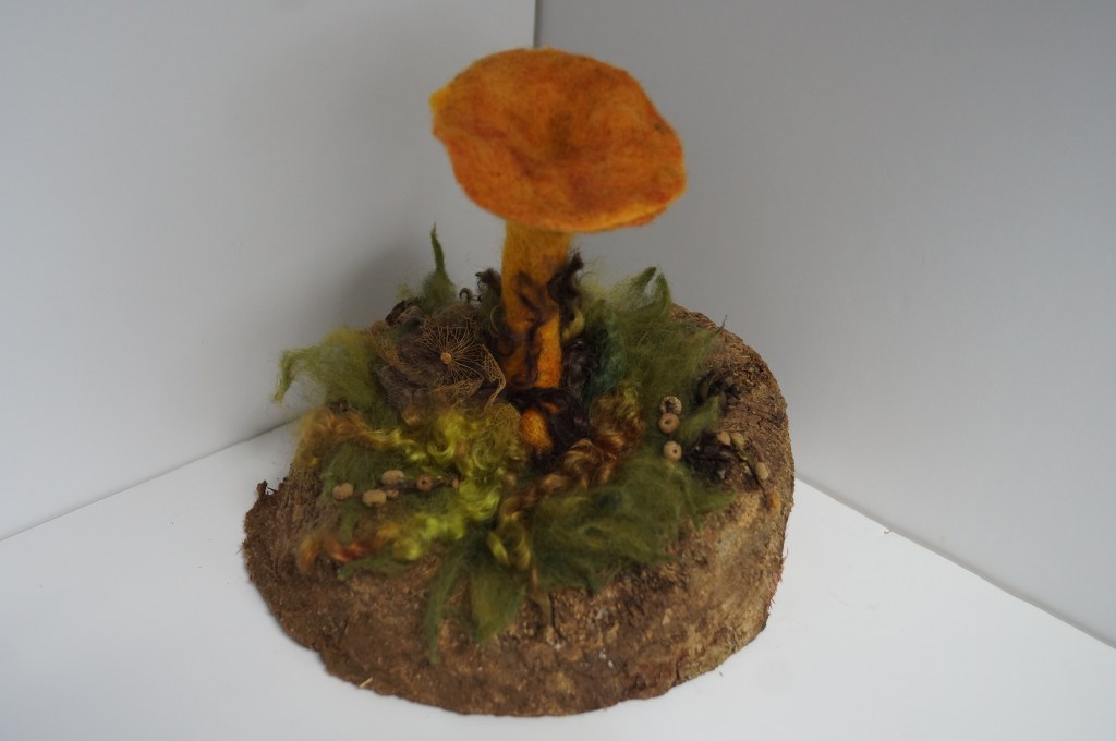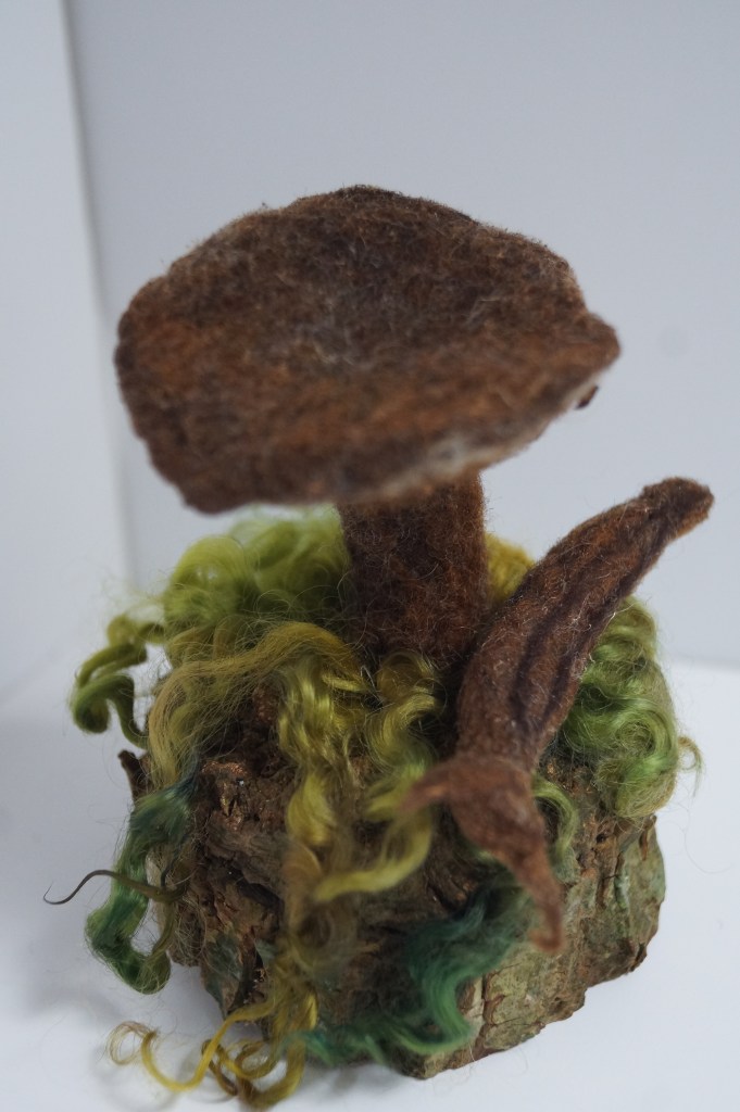 We are a bit mushroom mad in our house too, the ones that grow in the woods now, not any other kind! we love hunting for them, identifying them and cooking up the edible ones. With Autumn now upon us, the woods are our favourite place to wander. Last weekend we went to Killarney National Park to hunt for them for reference. You aren’t allowed to pick anything there, only take photos. With all that inspiration I decided to have a go at creating some with wool. A mix of wet felted and needle felted mushroom have started emerging from my studio and I have to say I am rather pleased with them. It also gave me an excuse to random dye a whole pile of Wensleydale curly locks that I got from a local farmer and to card some of Leiko Felts gorgeous dyed merino wool from my stash into mushroom blends.