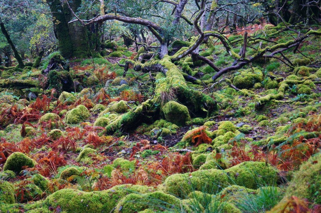 “The lower slopes of Tomies Mountain supports an extensive sessile oak wood. Until about 1580 it was a wild wood, then came heavy exploitation for charcoal for iron smelting and bark for tanneries.