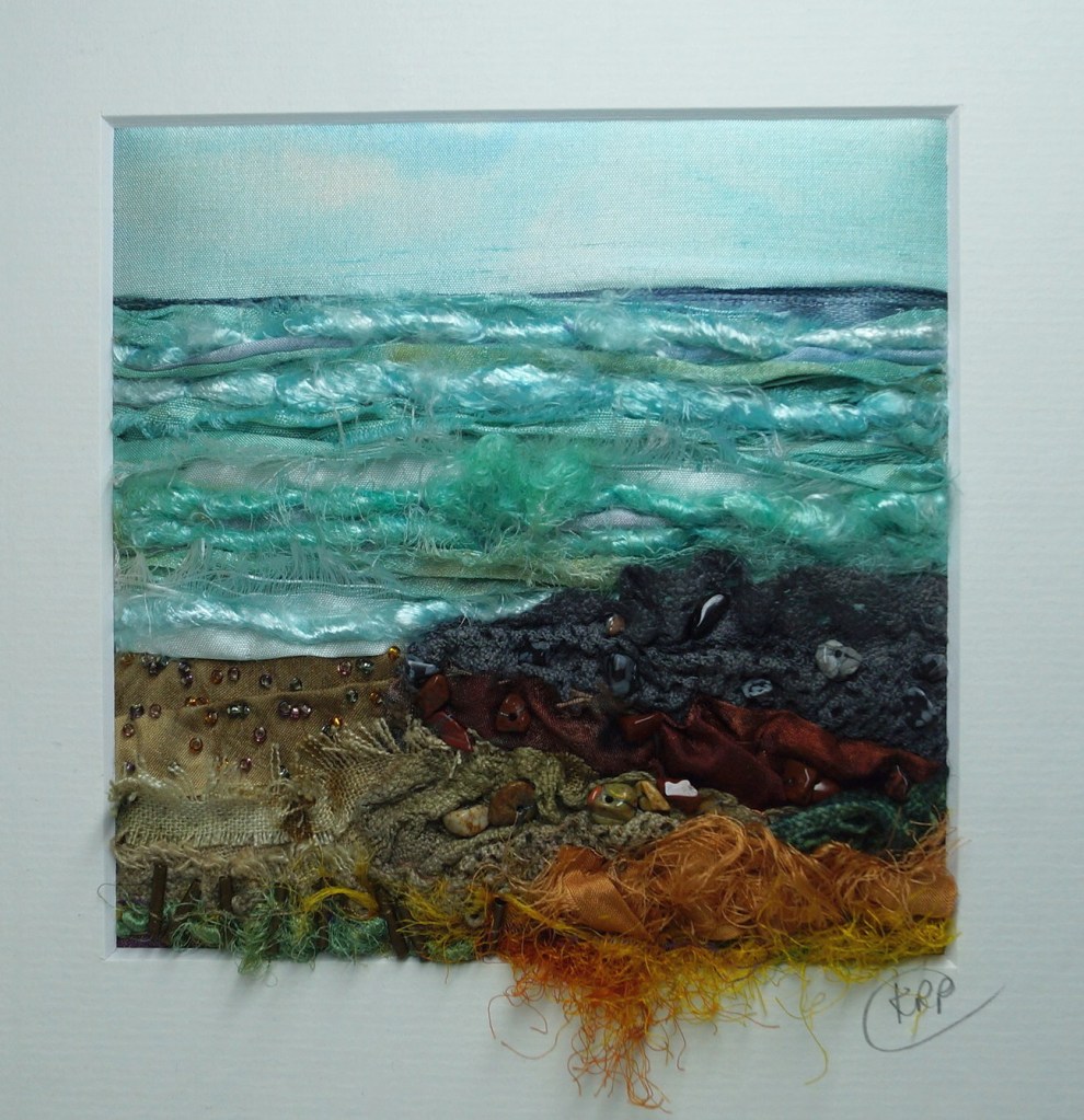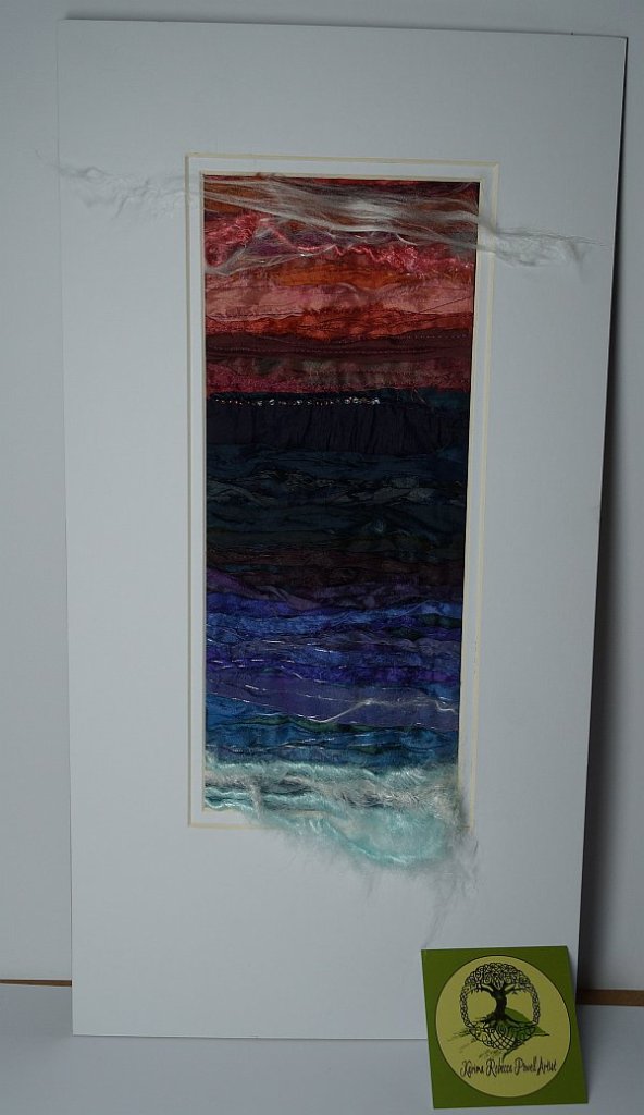 In 2020 I became inspired to create the textile version of my Elemental Colours Range and am very excited to showcase them here. They depict the Ocean, Earth and Fire. Inspiration comes from the places I visit, landscapes, wildflowers and seascapes. I use ready dyed and my own hand dyed and painted silk fabrics, fibres and wool, silk roving and lace as well as recycled sari silks for my textile wall art pieces. I collect and forage plants, leaves, seedheads, berries, seaweeds, mushrooms and anything I feel will give me an interesting colour or print and use these on silk, linen and wool. Embellishments of beads, charms, silk wool, sabra threads, feathers, sequins, recycled jewellery, leather, tulle and gilt threads may be applied. Some have added dimension using polyester stuffing and many have textured additions. These are all one of a kind pieces of tactile art with a touch of luxury. I adore the organic feel of them, the depth and light. Colours reflect those found in nature. The feelings they evoke are personal to the viewer, they do remind us of something deep in our souls, something special and beautiful, made with love. These continue to evolve and become more complex.