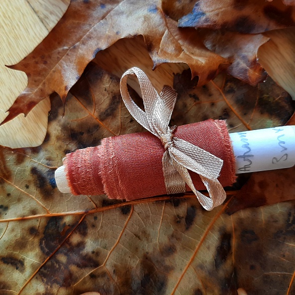Hand torn silk ribbons for florists in Autumn shades, Current available quantities as below. Custom orders welcome. WhatsApp Rebecca +353 83 042 9866