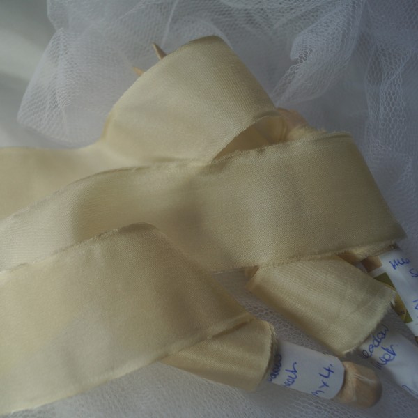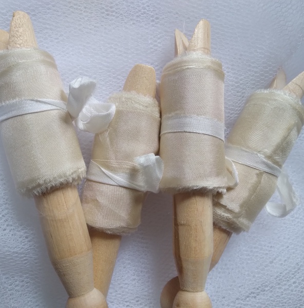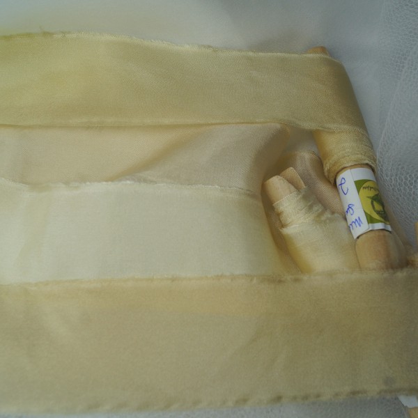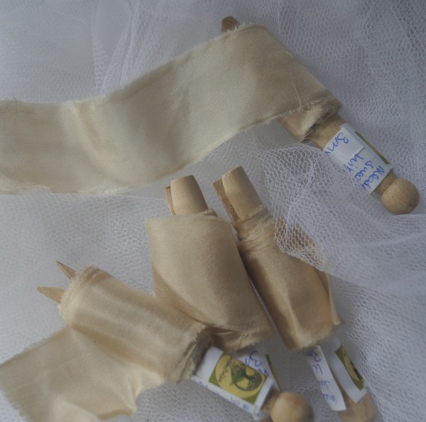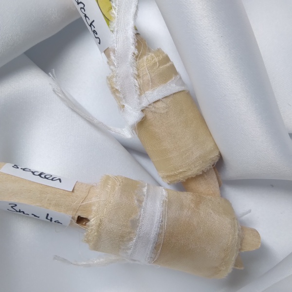 Hand torn silk ribbons for florists in light shades, These are botanically dyed using seasonal hedgerow plants and garden flowers. Current available quantities as below. Custom orders welcome. WhatsApp Rebecca +353 83 042 9866