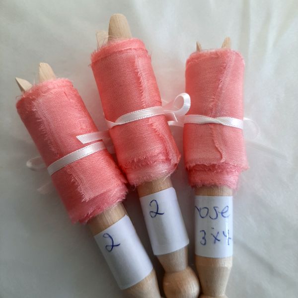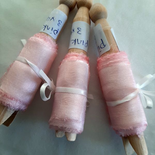 Hand torn silk ribbons for florists in pink and lilac shades, Current available quantities as below. Custom orders welcome. WhatsApp Rebecca +353 83 042 9866