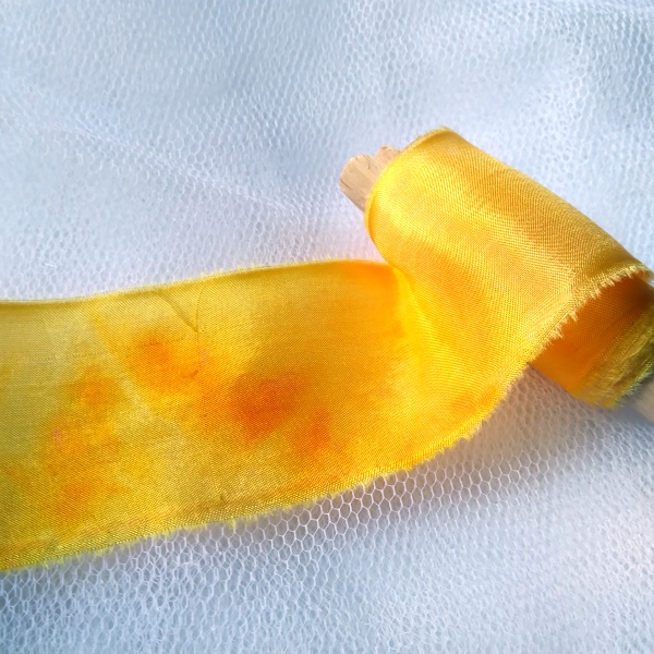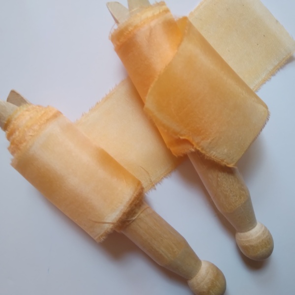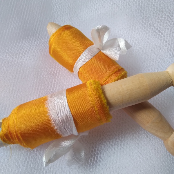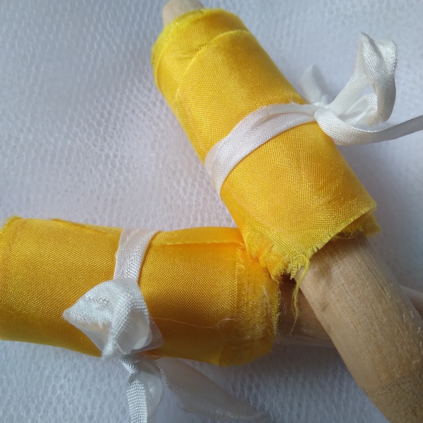 Hand torn silk ribbons for florists in yellow and orange shades, Current available quantities as below. Custom orders welcome. WhatsApp Rebecca +353 83 042 9866