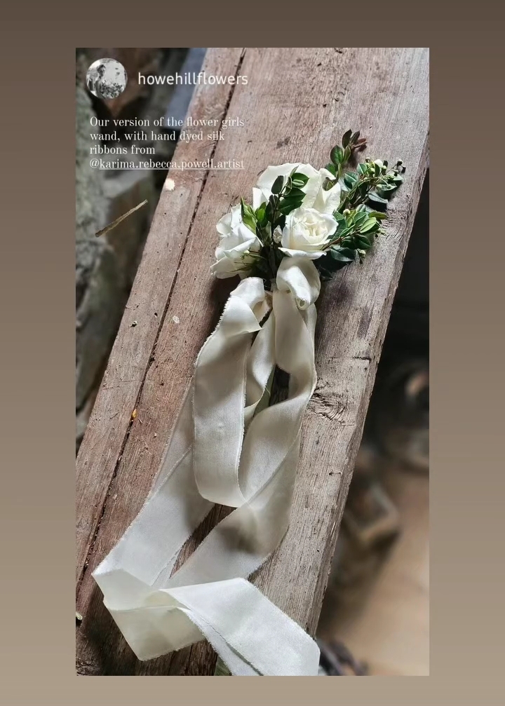 Hand torn and dyed silk ribbons. The perfect complement to your floral bouquets and displays. Bridal bouquets and wedding flowers. Custom orders welcome.